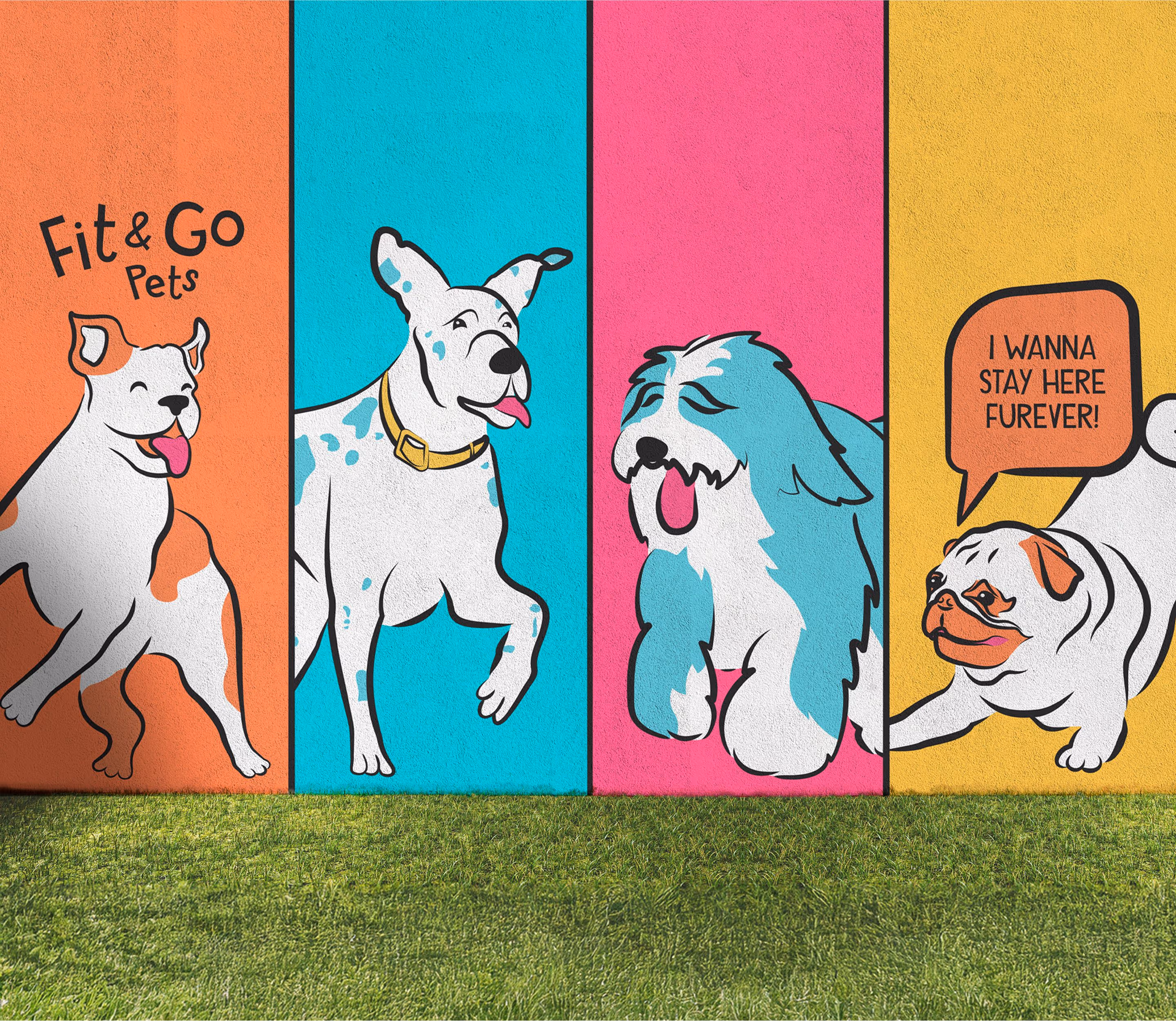 Fit & Go Pets were sinking in the sea of sameness. Frustrated with the “doggy daycare” associations, they wanted to overhaul their design, shape a distinct identity and craft a unique voice. Fit & Go Pets just didn’t want to be different, they wanted to dominate the market. Everything in the brief told us one thing about Fit & Go Pets: it’s “Disneyland for Dogs”
