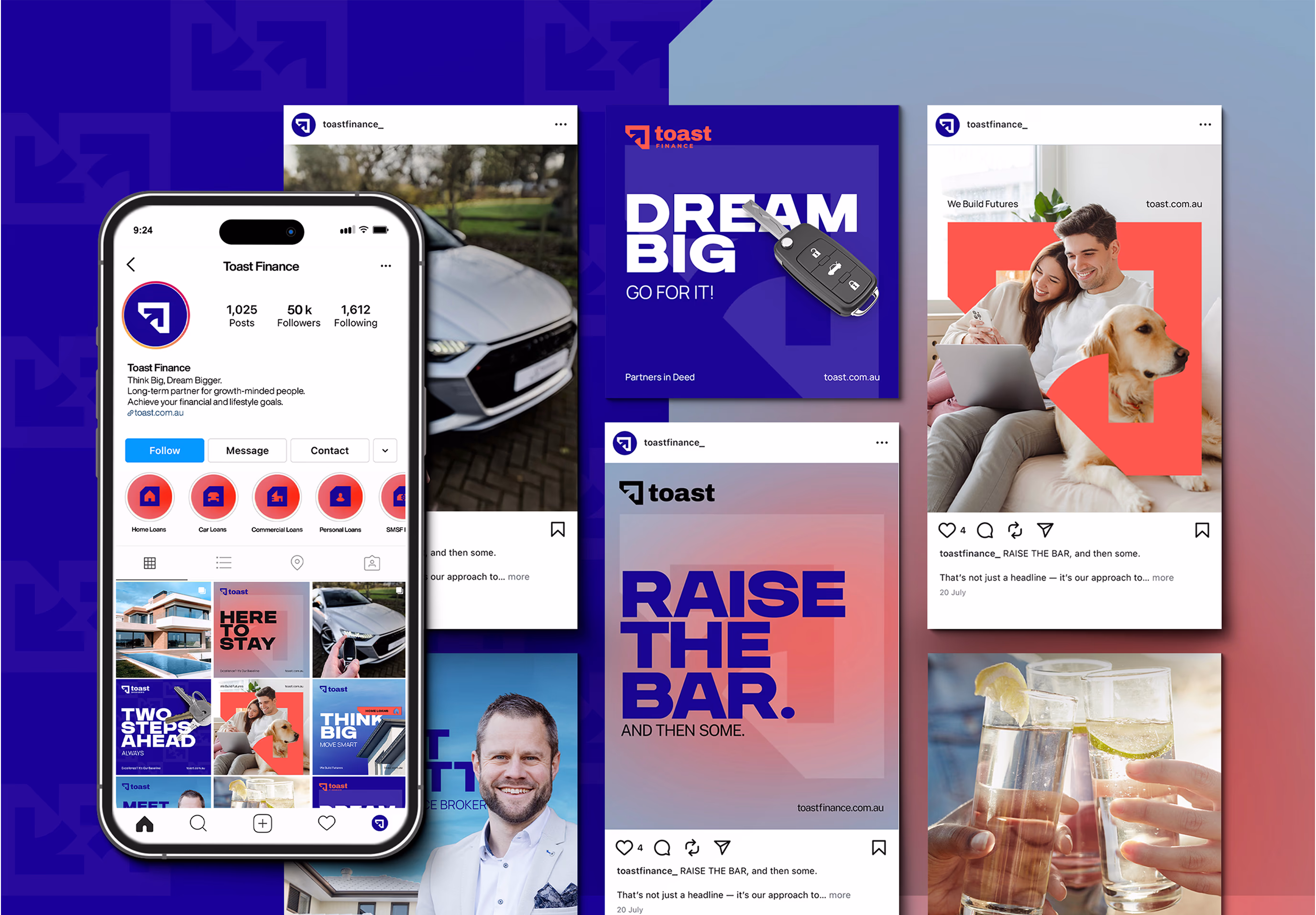 Toast is a modern finance brokerage on a mission to become the #1 in Australia. Led by Scott Baker, a well-established personal brand in the industry, Toast needed a bold and future-forward identity that would set it apart from traditional financial institutions. With a strong presence on social media and a content-rich strategy, the brand had to be as visually compelling as it was strategic.