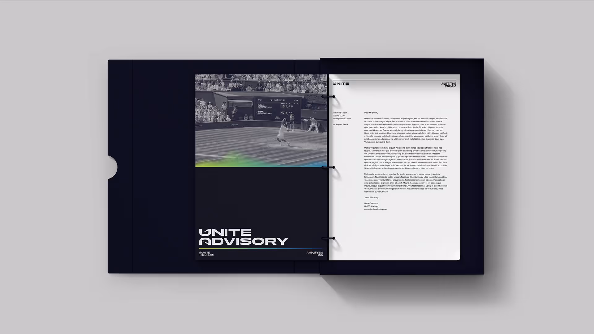UNITE is a bold sports agency built on athlete-first values. We crafted a brand strategy rooted in empowerment, unity, and global ambition. From tone to vision, every element was designed to reflect UNITE’s four themes (Total Strategic Guidance, United, You Call The Shots, and Amplifying You). Our approach fused strategic clarity with creative edge, positioning UNITE as both advocate and amplifier. Unite became a brand that leads with purpose and puts talent at the front of the sprint.