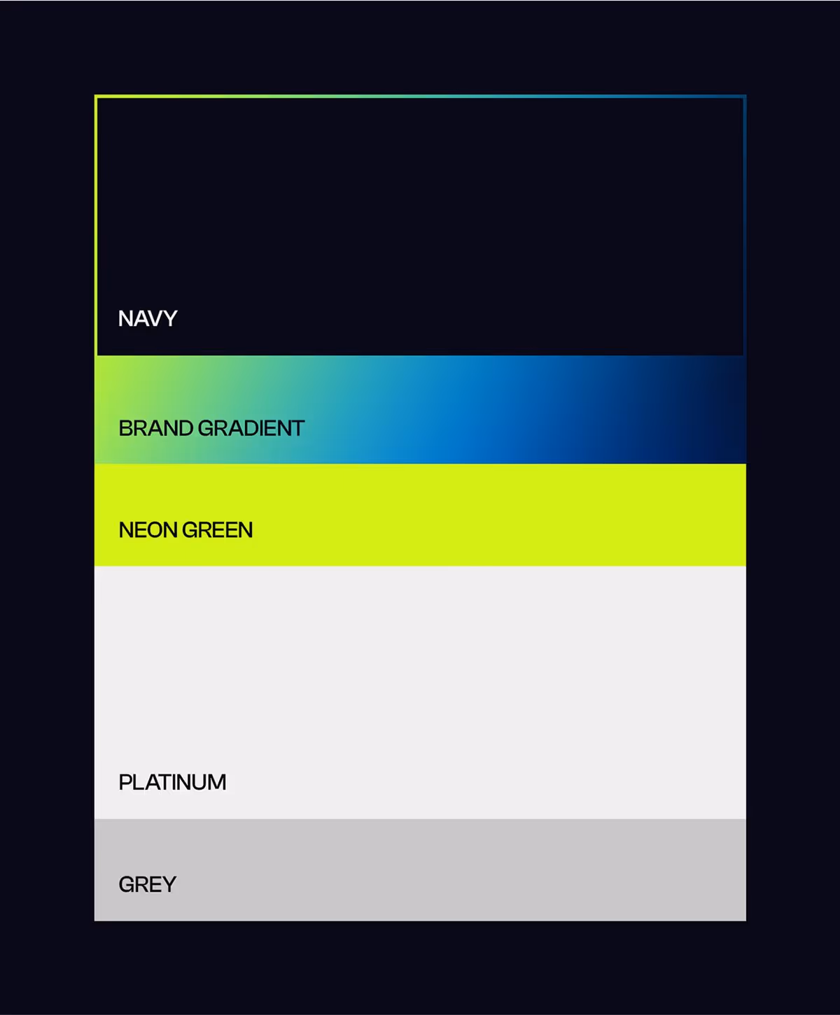 The colour palette pairs deep navy with a vivid gradient - a visual metaphor for energy, adaptability, and modernity. The gradient evokes momentum and fluidity, while the absence of traditional team colours ensures neutrality across a wide athletic roster.
