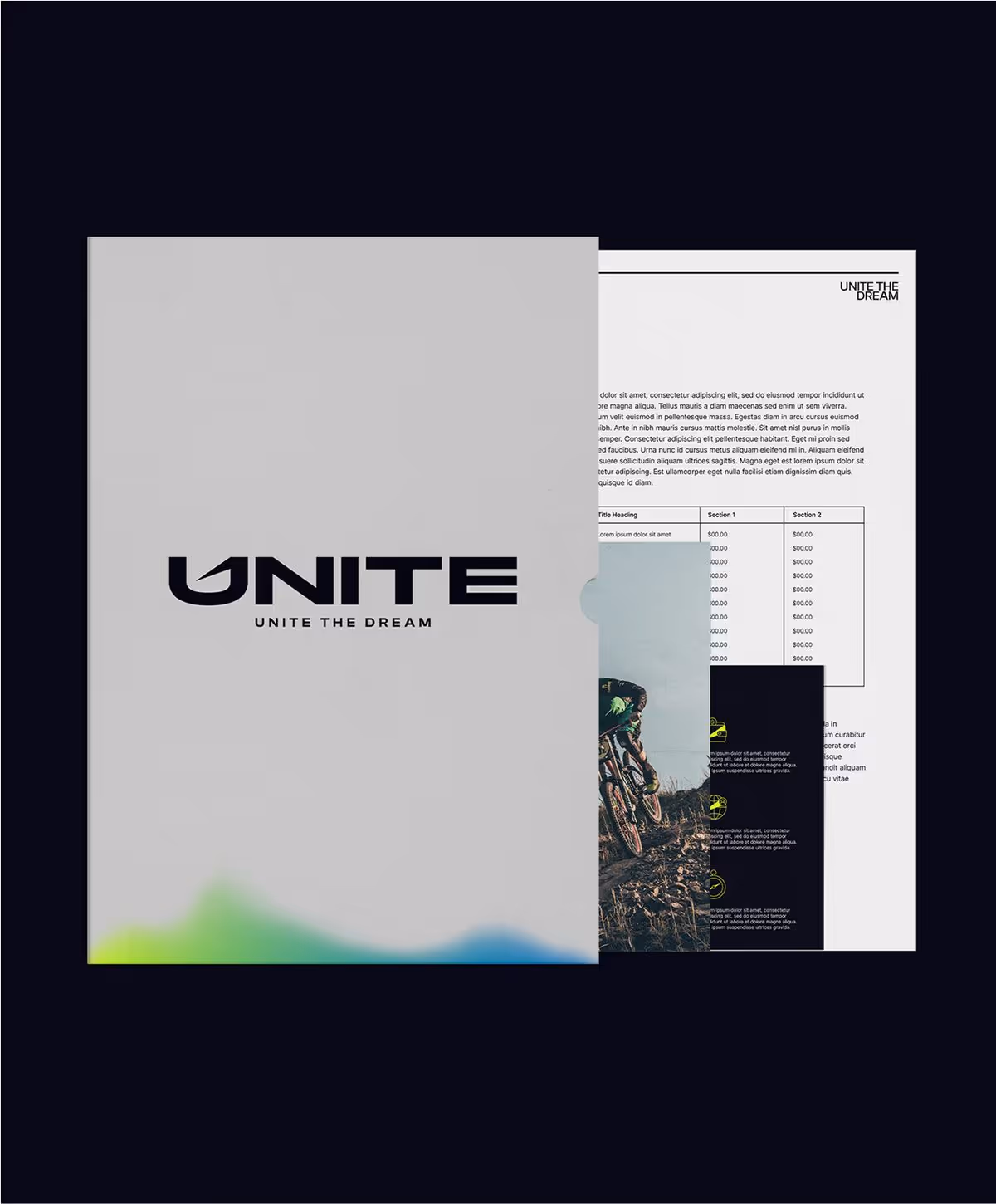 UNITE is a full-scale system built to empower athletes. From brand strategy to design execution, every element speaks to the mission: equipping sport-minded people with the right tools to turn their natural potential into life-changing success. Clean. Strategic. Unapologetically bold.